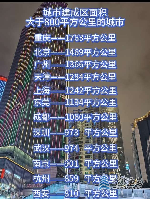 建成區(qū)面積大于800平方公里的十二個城市 西安入列 查看全文